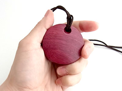 焦げ茶色のペンダント用布袋に入れてお届けします。