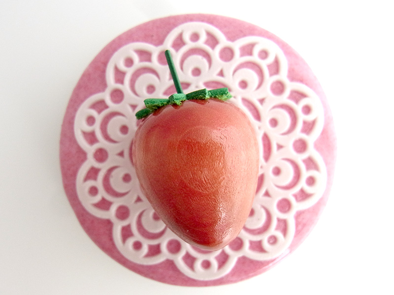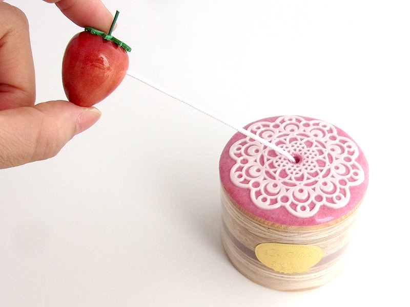 ma711 レース模様にいちご(丸)ケーキオルゴール