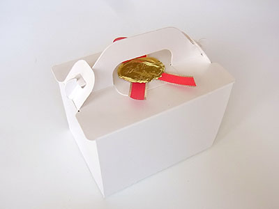 こちらはプレゼント用に白いケーキ箱に入れてお送りします。