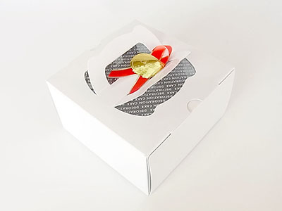 こちらはプレゼント用に白いケーキ箱に入れてお送りします。