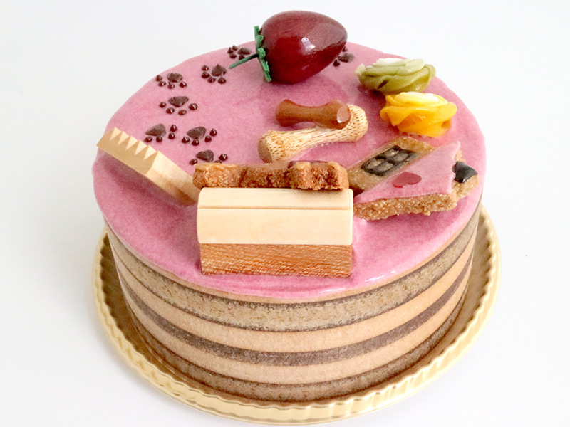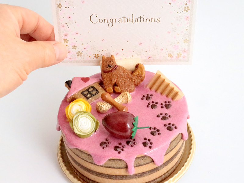 お客様からご要望が多かった、犬モチーフのケーキオルゴールがようやく完成しました。