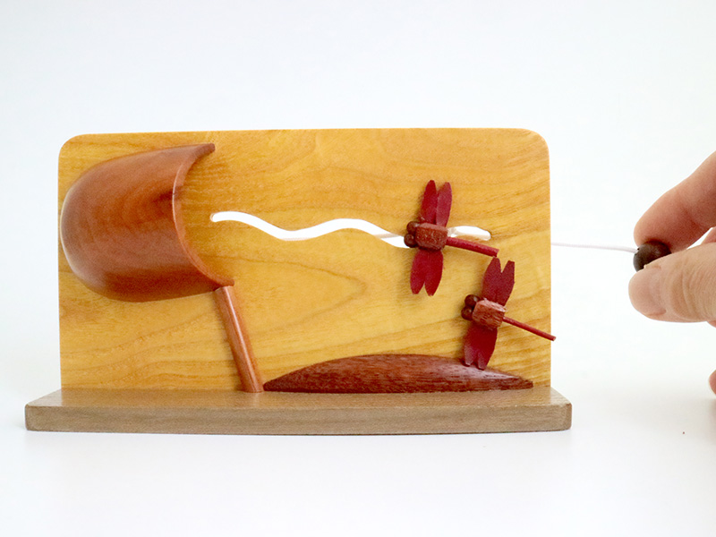 後ろの玉を引くと、ゆっくり赤とんぼが流れていきます。