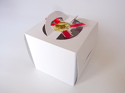 こちらはプレゼント用に白いケーキ箱に入れてお送りします。